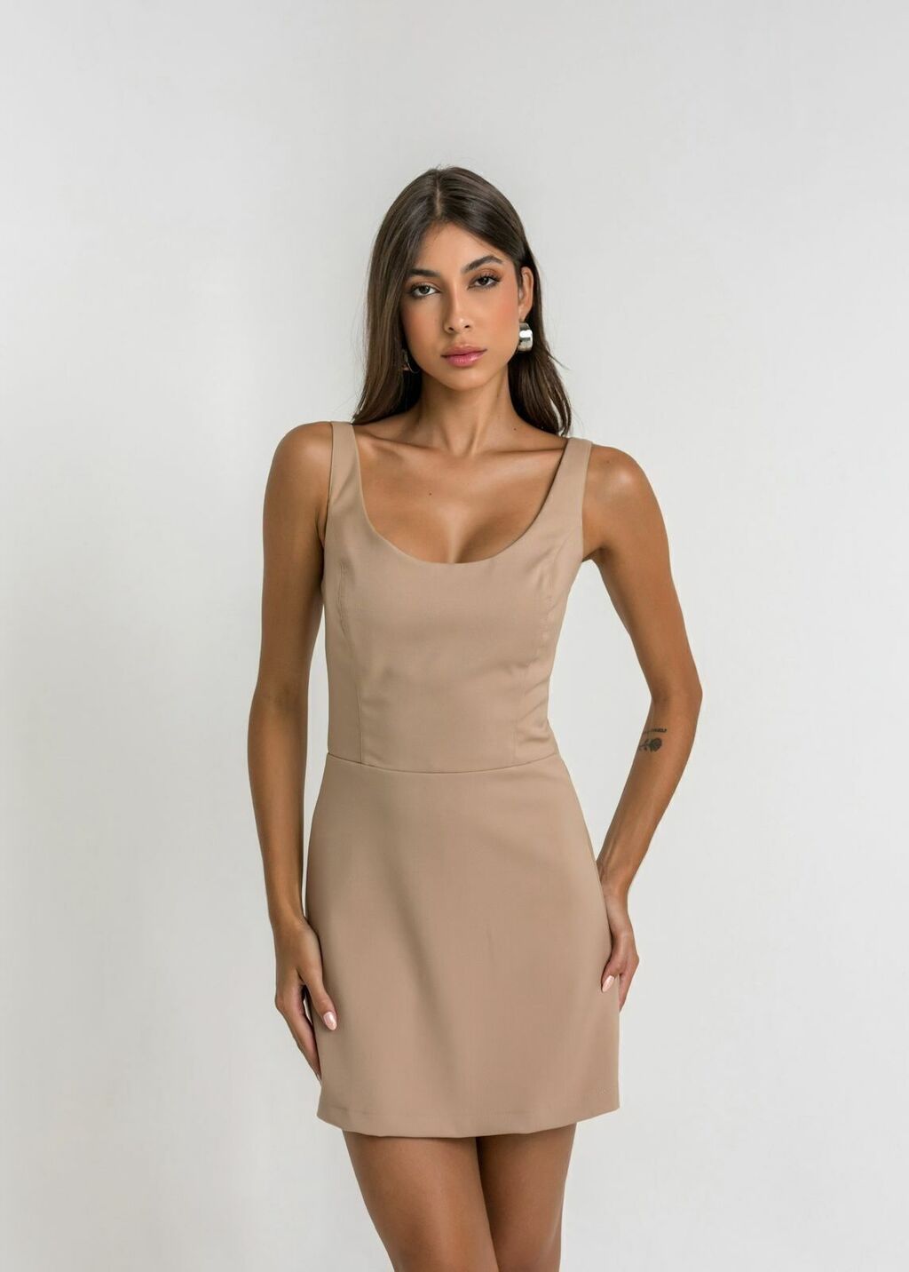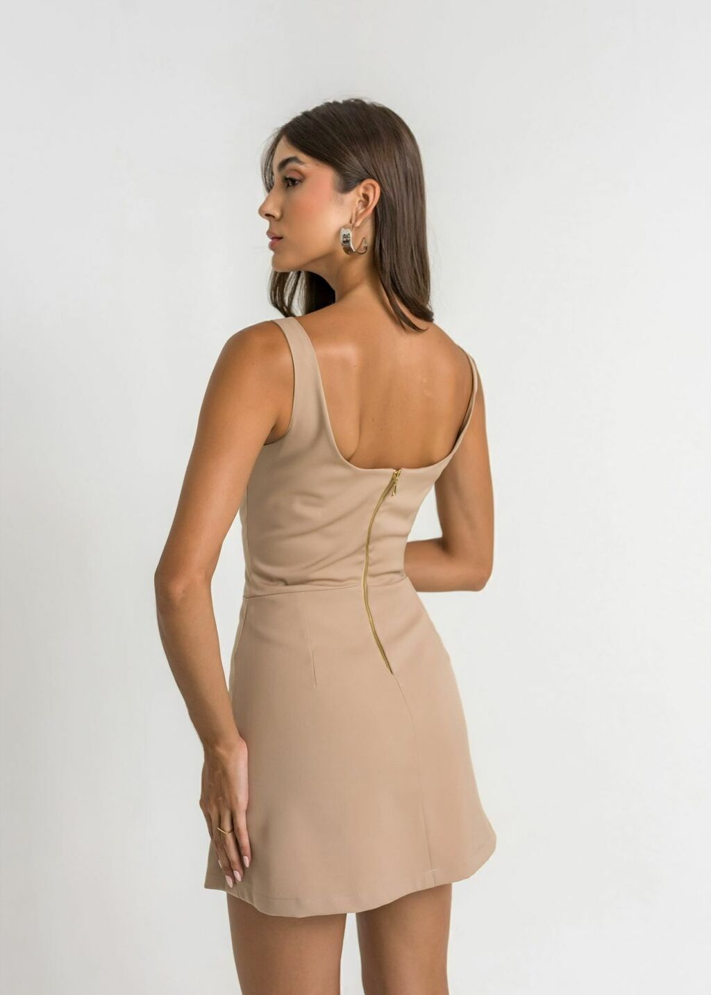Detalhes: Macaquinho Adriana curto com modelo de vestido. Fechamento em zíper na parte de trás.
